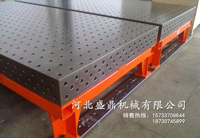 柔性三維組合焊接工裝平臺(tái)的承載能力高,鋼性穩(wěn)定,它的五個(gè)面均加工有規(guī)則的孔,并刻有網(wǎng)線。焊接平臺(tái)可方便地延伸和擴(kuò)展,組合。經(jīng)擴(kuò)展的標(biāo)準(zhǔn)臺(tái)面可模塊化的定位和夾緊直接連接在一起。在安裝、調(diào)整和定位工件過(guò)程將柔性三維組合焊接工裝系統(tǒng)的通用功能展示的淋漓盡致,尤其在了大型工件方面的應(yīng)用上。