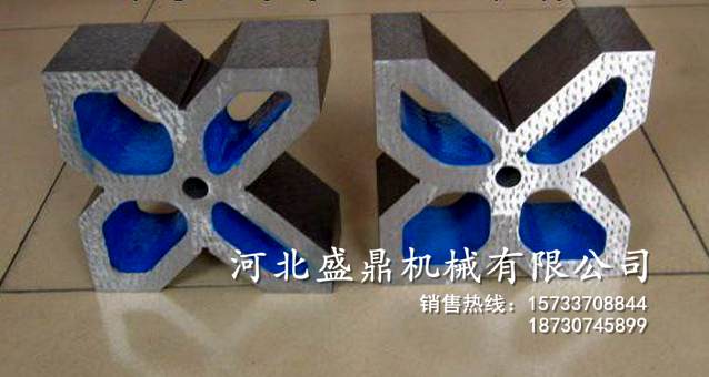 主要用來安放軸,圓盤,套筒等圓形工件,以便找出中心線與劃出中心線。通常V型塊都是一副兩塊,兩塊的平面與V型槽都是在一次安裝中磨出的。精密V型塊的尺寸相互表面間的垂直度,平行度誤差不會_過0.01毫米,V型槽的中心線必需在V型架的對稱平面內(nèi)并與底面平行,平行度,同心度的誤差也不會_過0.01毫米,V型槽半角誤差在±30~±1范圍內(nèi)。精密V型塊也可以做劃線,帶有夾持弓架的V型塊,可以把圓柱形工件牢固的夾持在V型塊上,翻轉(zhuǎn)到各個位置劃線。